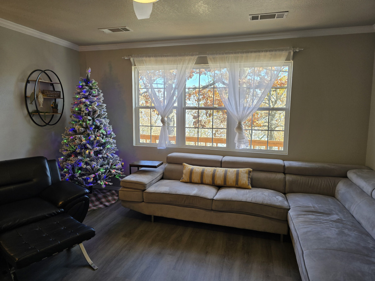Relax with the whole family at this peaceful lake house for an unforgettable getaway. Spend days lounging on the deck, roasting marshmallows around the fire pit, or taking out the kayaks we provide for a small additional fee. Enjoy some family time playing in the living room with a large smart TV or take a break in the office space with a desk and serta futon. At the end of the day, you can drift off to sleep peacefully in one of the two bedrooms with a king and queen sized beds, each equipped with wall mounted smart TVs. Our property makes for the perfect lake side getaway that will keep everyone refreshed and relaxed.