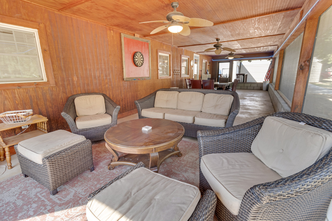 Come and relax at our spacious lake view home and take in the stunning lake views from our 600 square foot screened-in porch. Complete with a 43-inch smart TV, a dart board, and a large table with seating for 8, you'll be sure to enjoy all that outdoor living has to offer with plenty of breeze and without worrying about pesky mosquitos. Our 4-bed, 2-bath home features beds for a total of 10 people and is only a 5-minute walk to the beach, the perfect destination for everyone to have a great day by the lake!